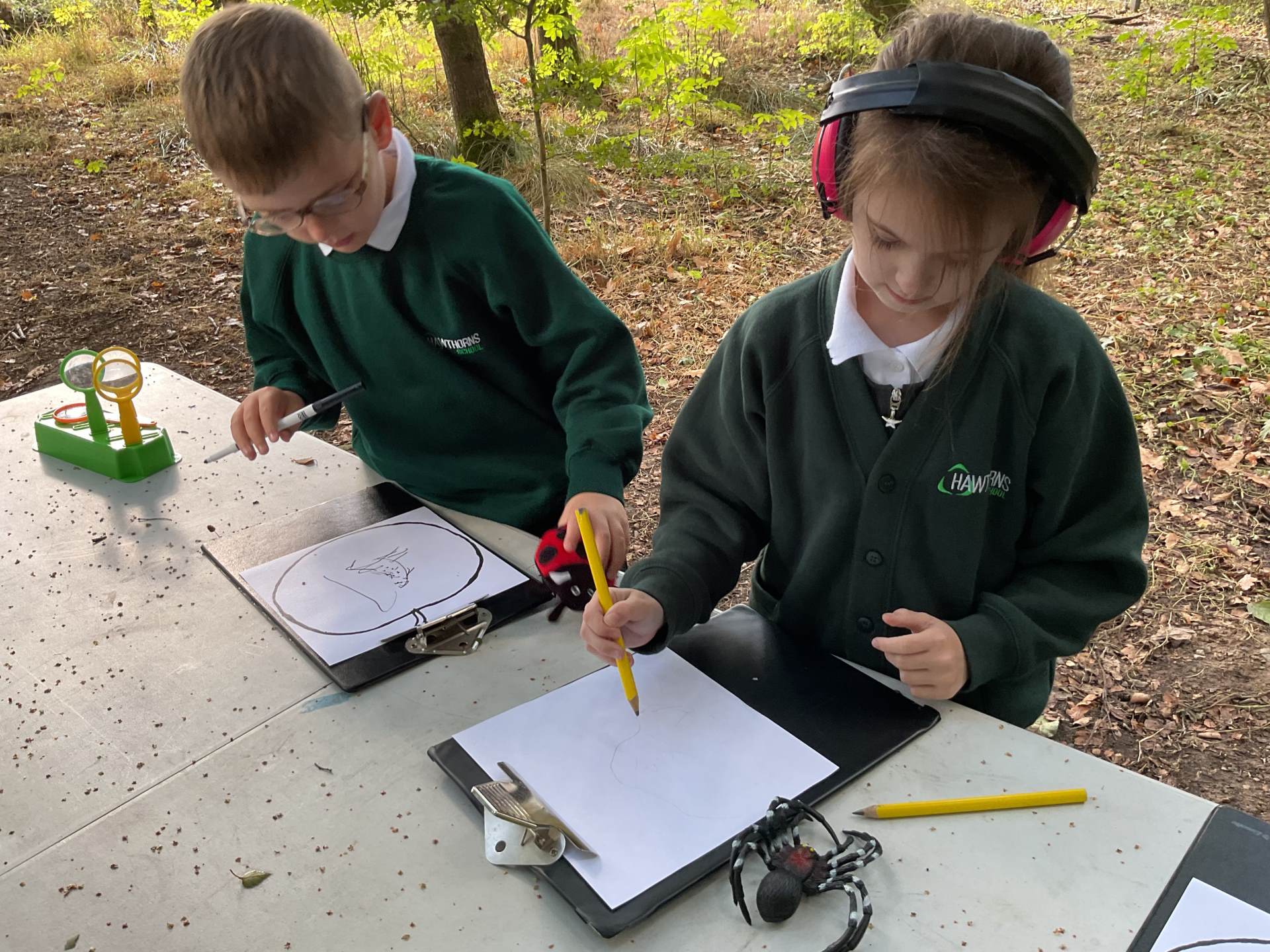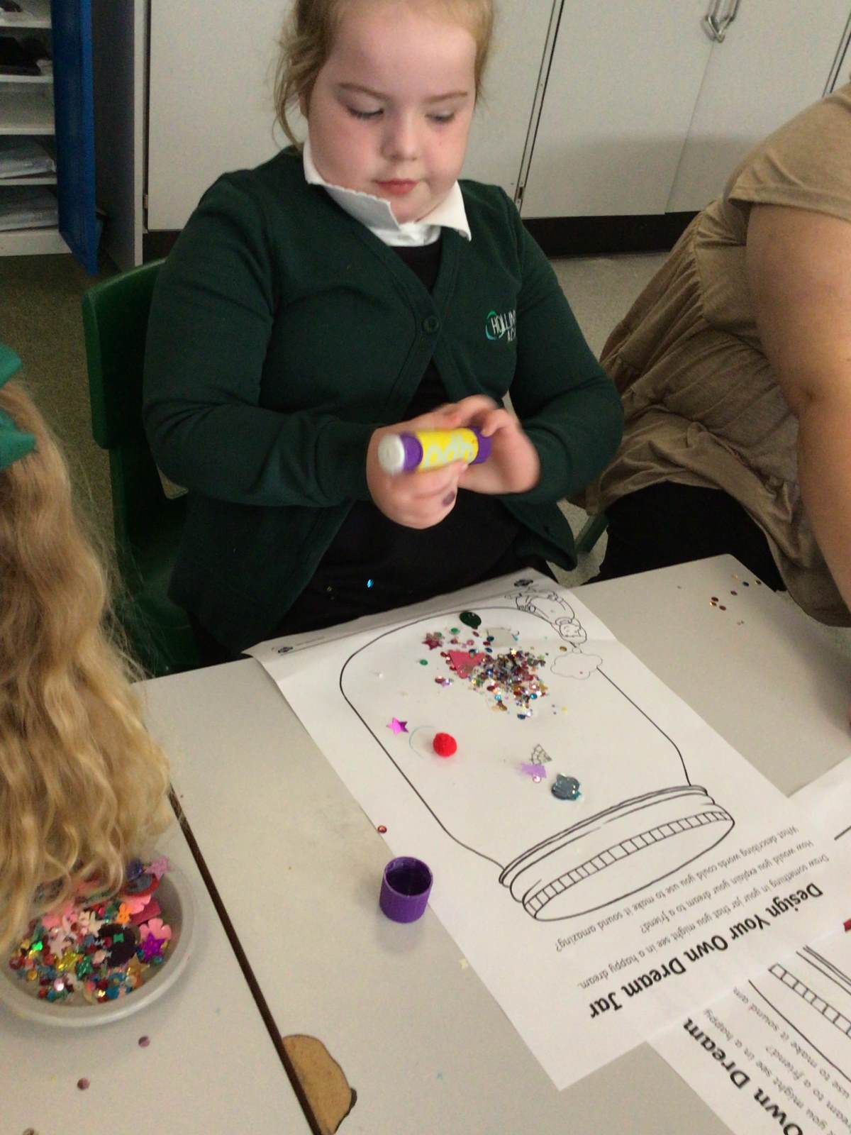 Beech, Holly, Fir, and Olive classes coloured pictures of Dahl’s characters to decorate the library areas, adding inspiring Roald Dahl quotes to the displays. Pine Class went on a ‘James and the Giant Peach’ minibeast hunt in the forest, drawing their discoveries into “peaches” and enjoying peaches as a snack. Meanwhile, Blossom and Jasmine classes made dream jars in Science, and Maple class designed their own chocolate bars in Literacy.
