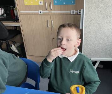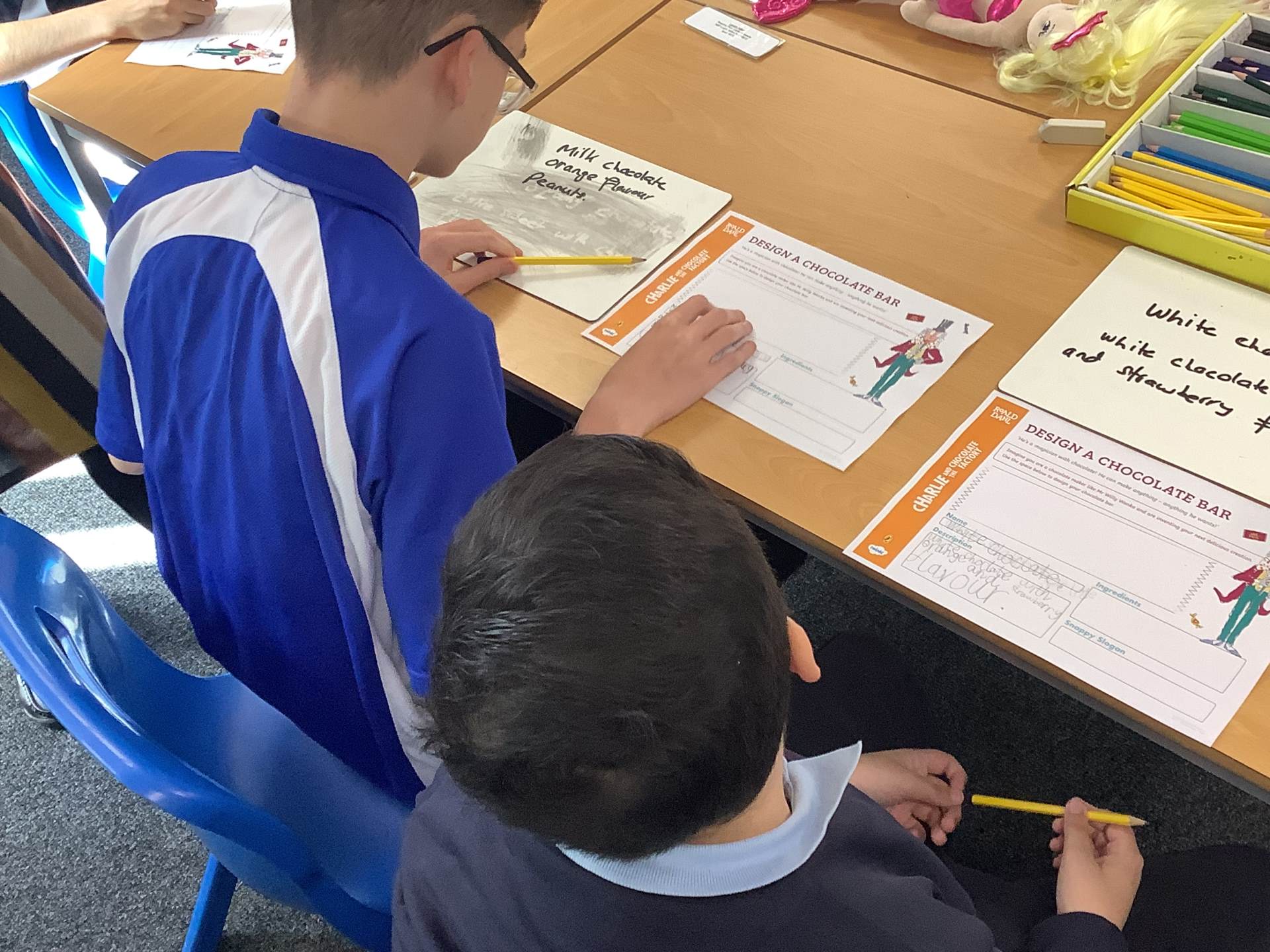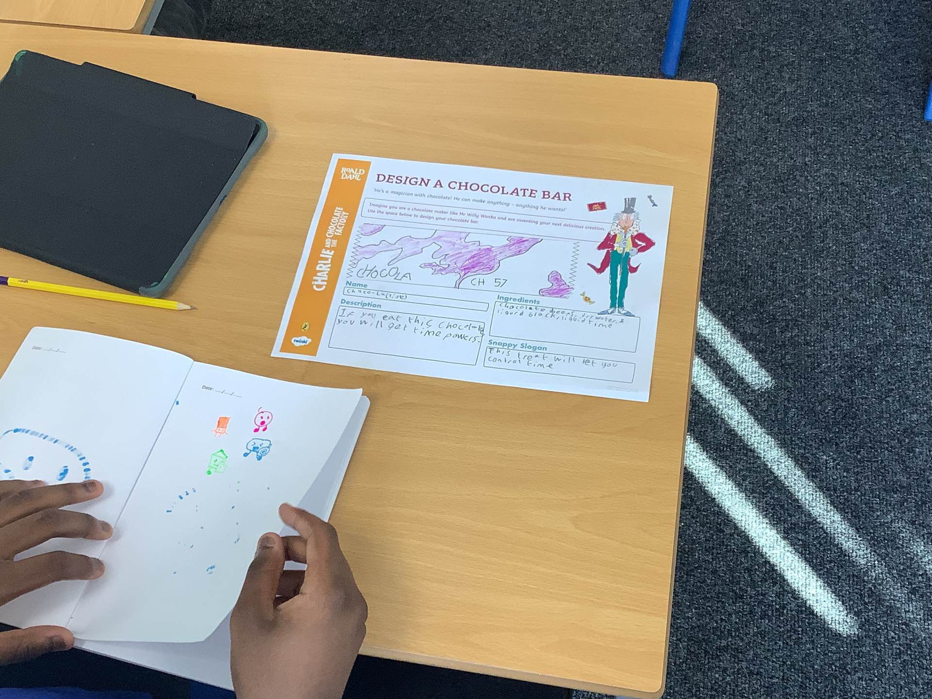 Some classes enjoyed Roald Dahl-themed food, including Matilda’s pancakes, George’s Marvellous Medicine milkshakes, James’ giant peaches, Bruce Bogtrotter’s cake, and even Snozzcumber. Pupils also created their own Wonka Bars with imaginative fillings, and produced Roald Dahl character-themed artwork, such as Mr Fox masks and painted peaches. It was a joyful day that inspired creativity and a love of reading.