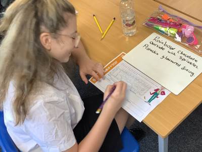 English lessons inspired the class to write imaginative poems using Dahl’s playful language, and students also measured liquids into beakers, blending numeracy with the enchanting world of Dahl. In Food Technology, students invented fantastical recipes such as pink chips and dragon soup. The day was filled with learning, laughter, and a celebration of reading and creativity.