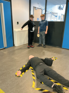 As pupils arrived, they were greeted by a staged “crime scene” displayed along the main corridor. This dramatic setup set the tone for the day, capturing pupils’ imaginations from the outset. Staff supported pupils in moving carefully past the area and ensured that no “evidence” was disturbed before investigations began.