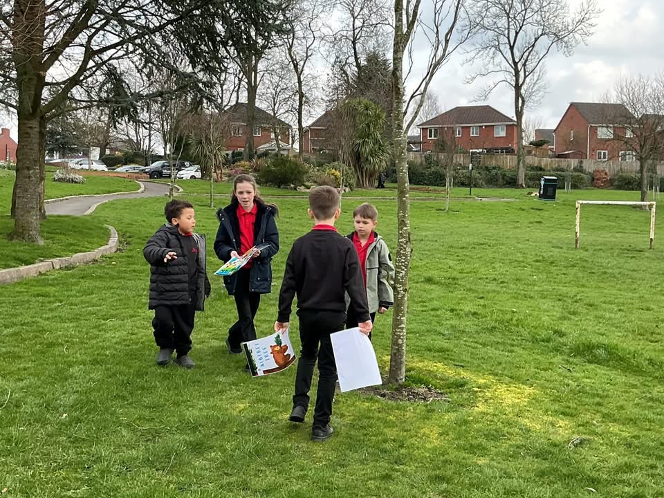 Some pupils embarked on a Julia Donaldson trail around the school grounds, checklist in hand, as they searched eagerly for hidden clues. Their detective work paid off when the trail led them to a secret stash—a box filled with books and biscuits for the class to enjoy together.