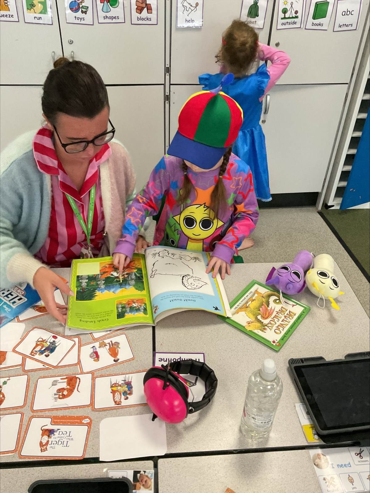 The excitement continued with a Traditional Tales character hunt, sending pupils exploring across the school to track down well-known storybook figures. Back in classrooms, children shared their favourite stories, creating warm moments of connection as they celebrated the joy of reading together.