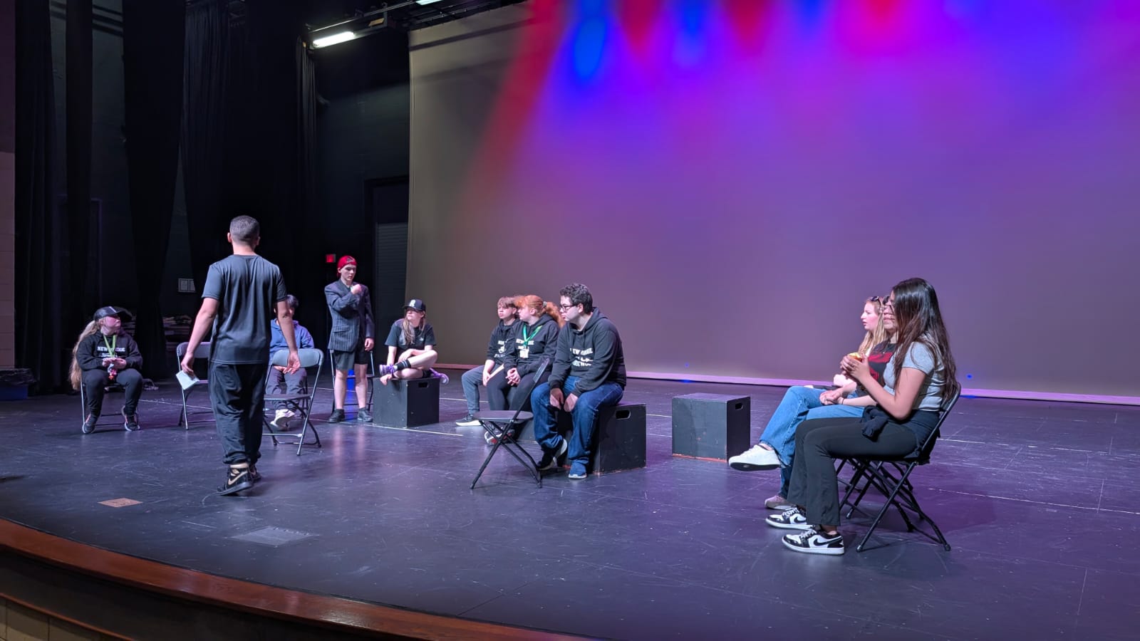 After yesterday’s workshops at ‘The Second City’ and ‘iO Theatre’, the students were back at the Ridgewood Campus to practice their enhanced improvisation skills in preparation for the end of the week performances.