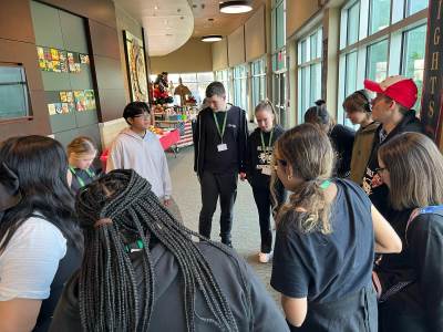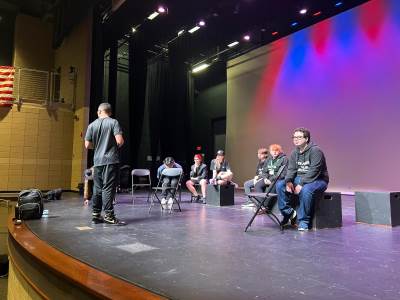 When we arrived at Ridgewood, both New Bridge and Ridgewood students were put into groups and they practiced a series of ‘Armando Improv’ pieces.