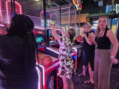 We all freshened up at the hotel and then met the Ridgewood students for our evening meal and video gaming at a popular amusement arcade.