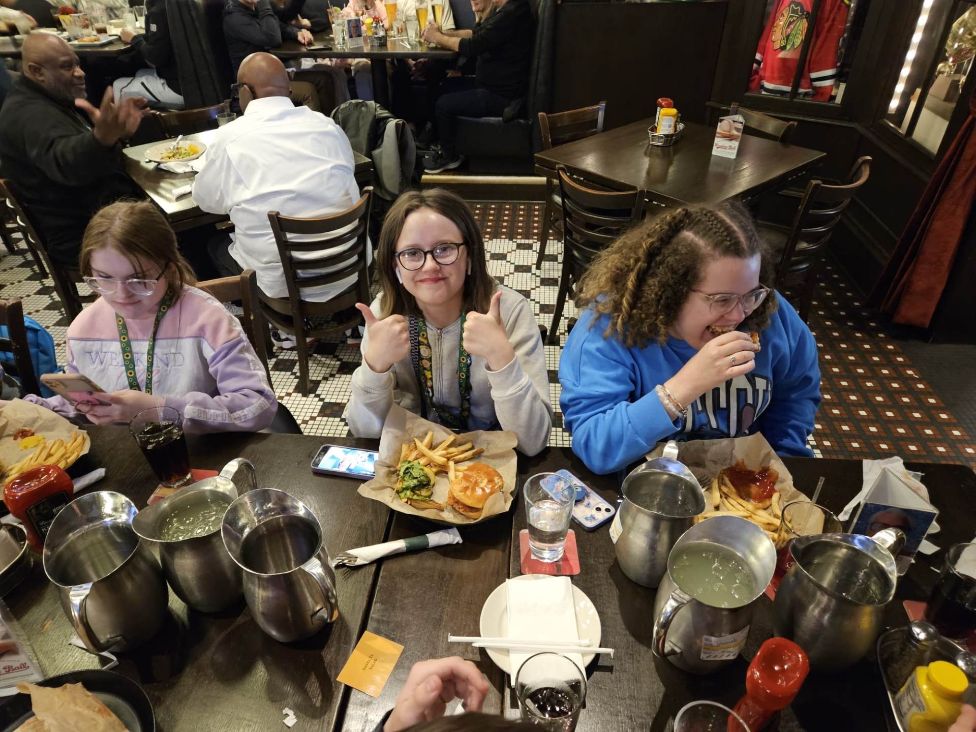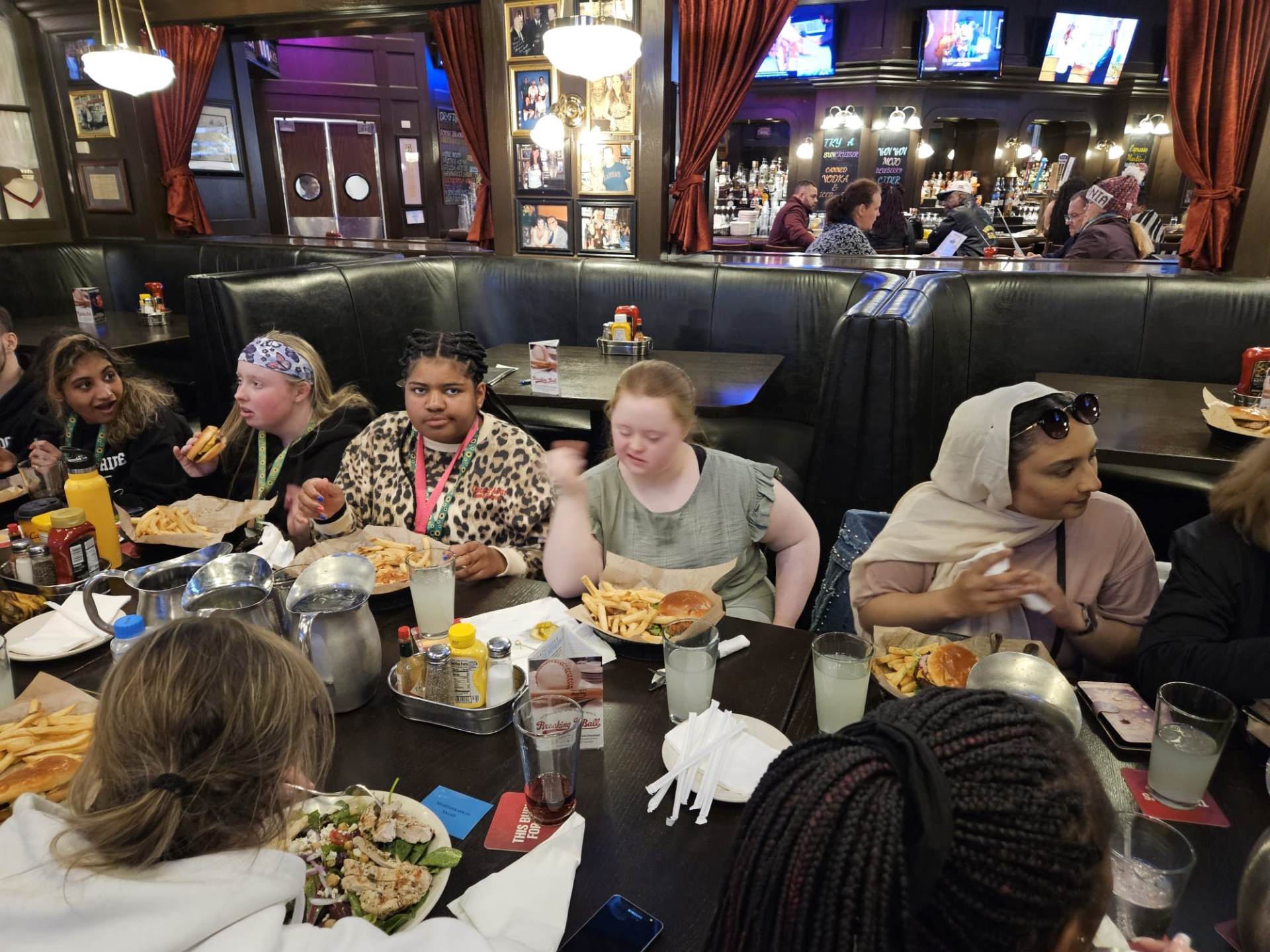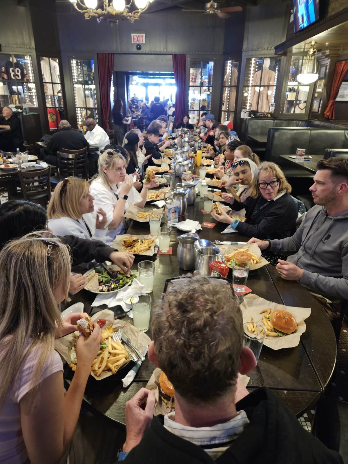 After our amazing cruise, we went for our early evening meal at Harry Caray's Tavern where we enjoyed various salads, traditional Chicago lemonade, chicken burgers, fries, beef burgers, plant burgers and chocolate brownies.