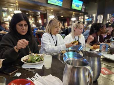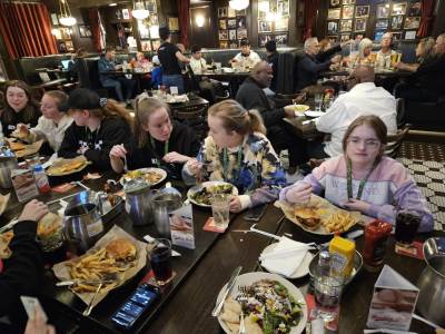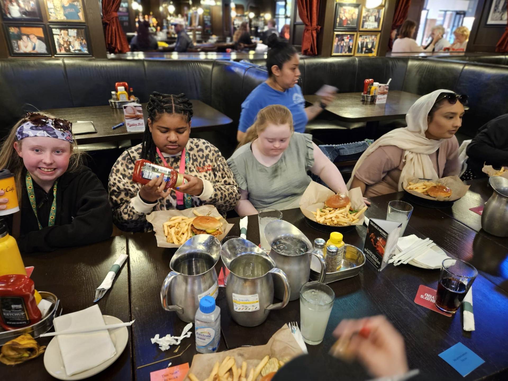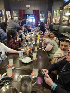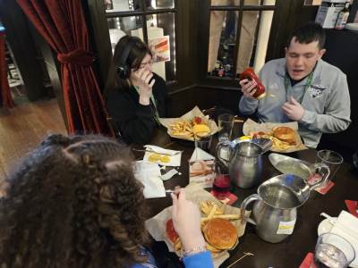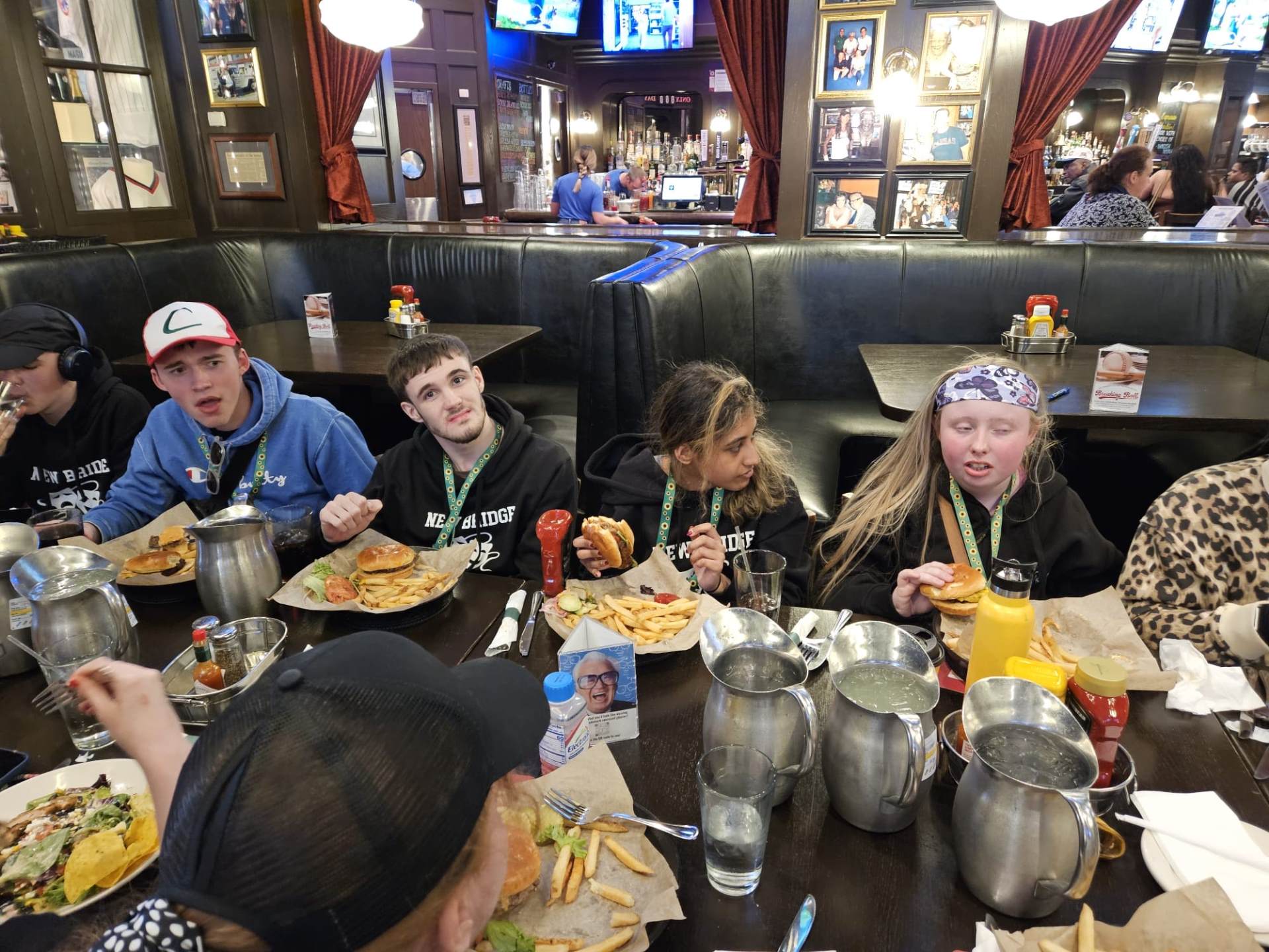 After our amazing cruise, we went for our early evening meal at Harry Caray's Tavern where we enjoyed various salads, traditional Chicago lemonade, chicken burgers, fries, beef burgers, plant burgers and chocolate brownies.