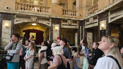 When we arrived in Chicago Town, we headed to the famous 'Chicago Theatre'. Once there, we met the Theatre's tour guides who showed us around this breathtakingly beautiful building.
