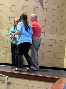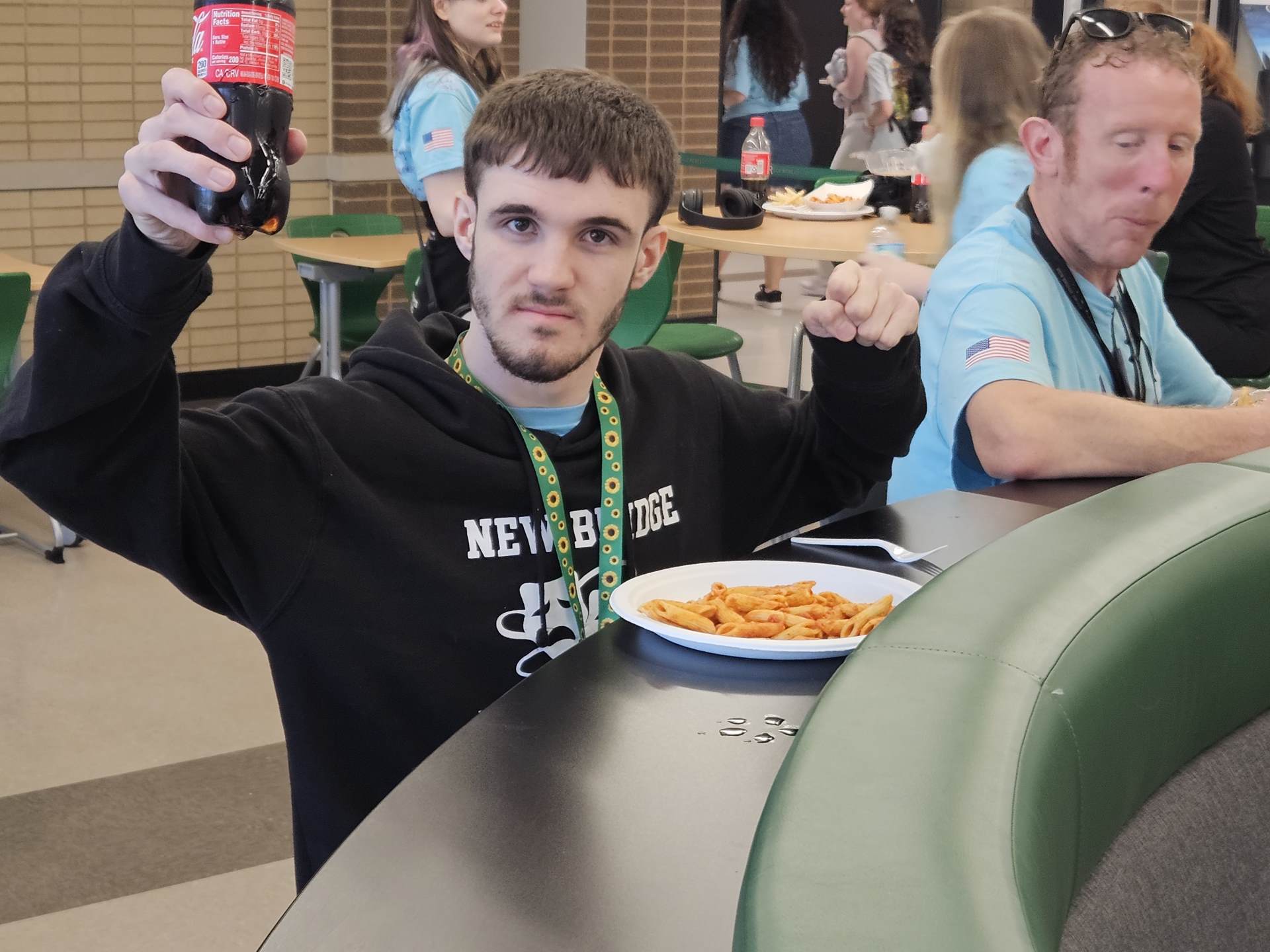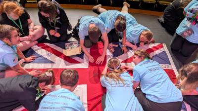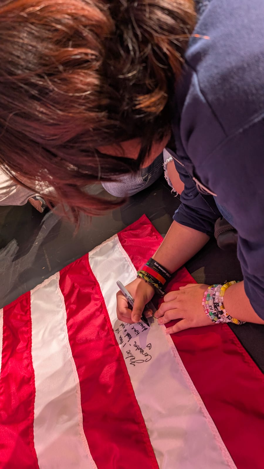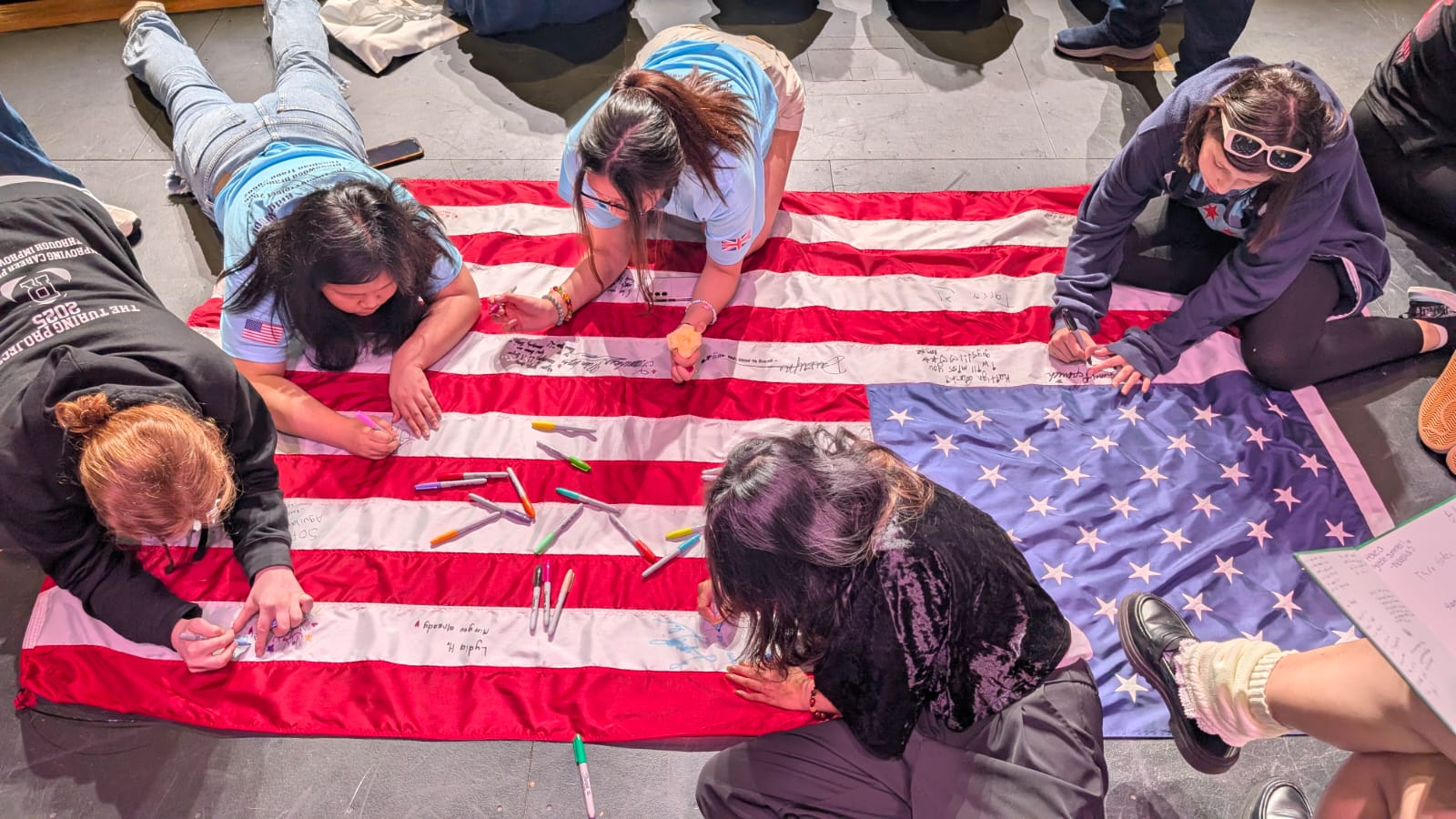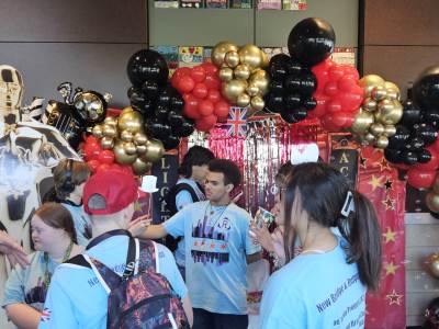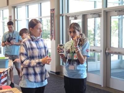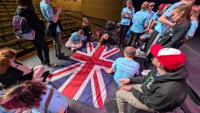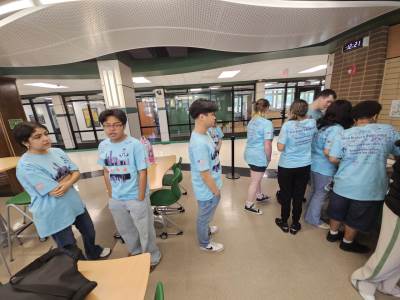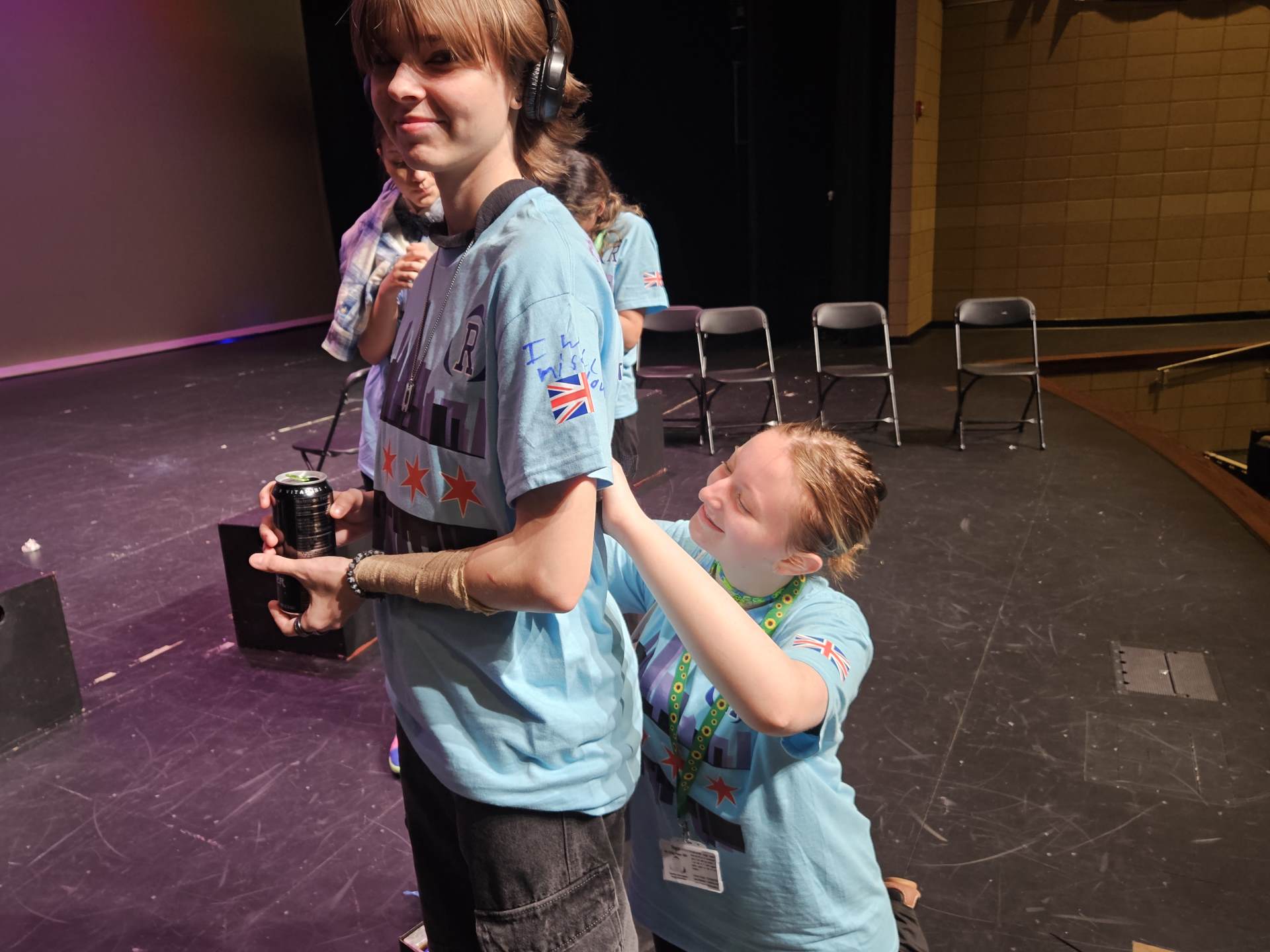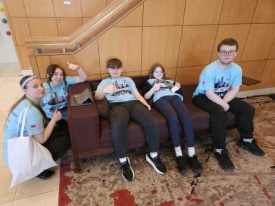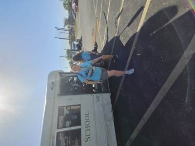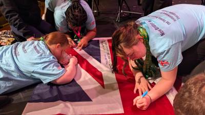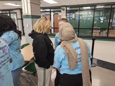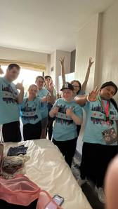 During the first section of the morning, New Bridge and Ridgewood students signed each other’s t-shirts, took selfies and lots of photographs, and the New Bridge students signed a Union Jack flag which was given to Ridgewood. In turn, Ridgewood students signed an American flag and presented it to us.