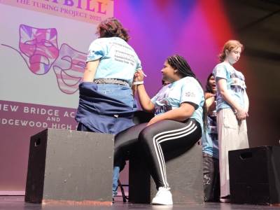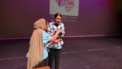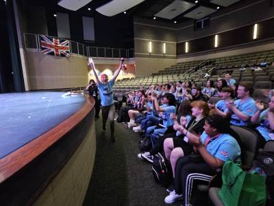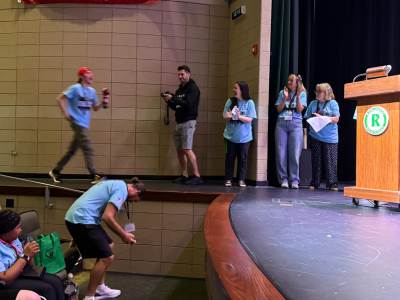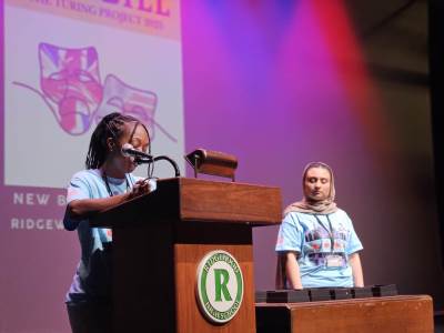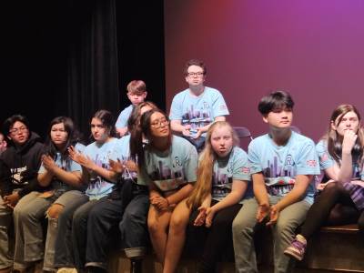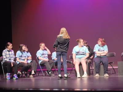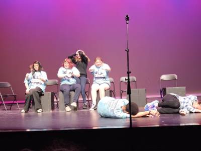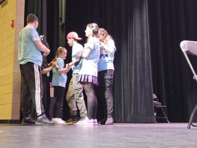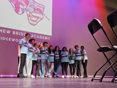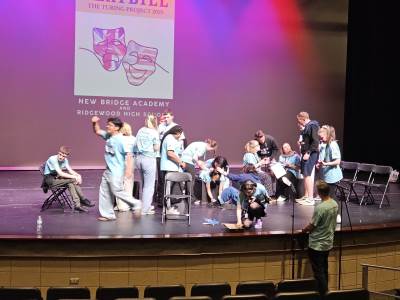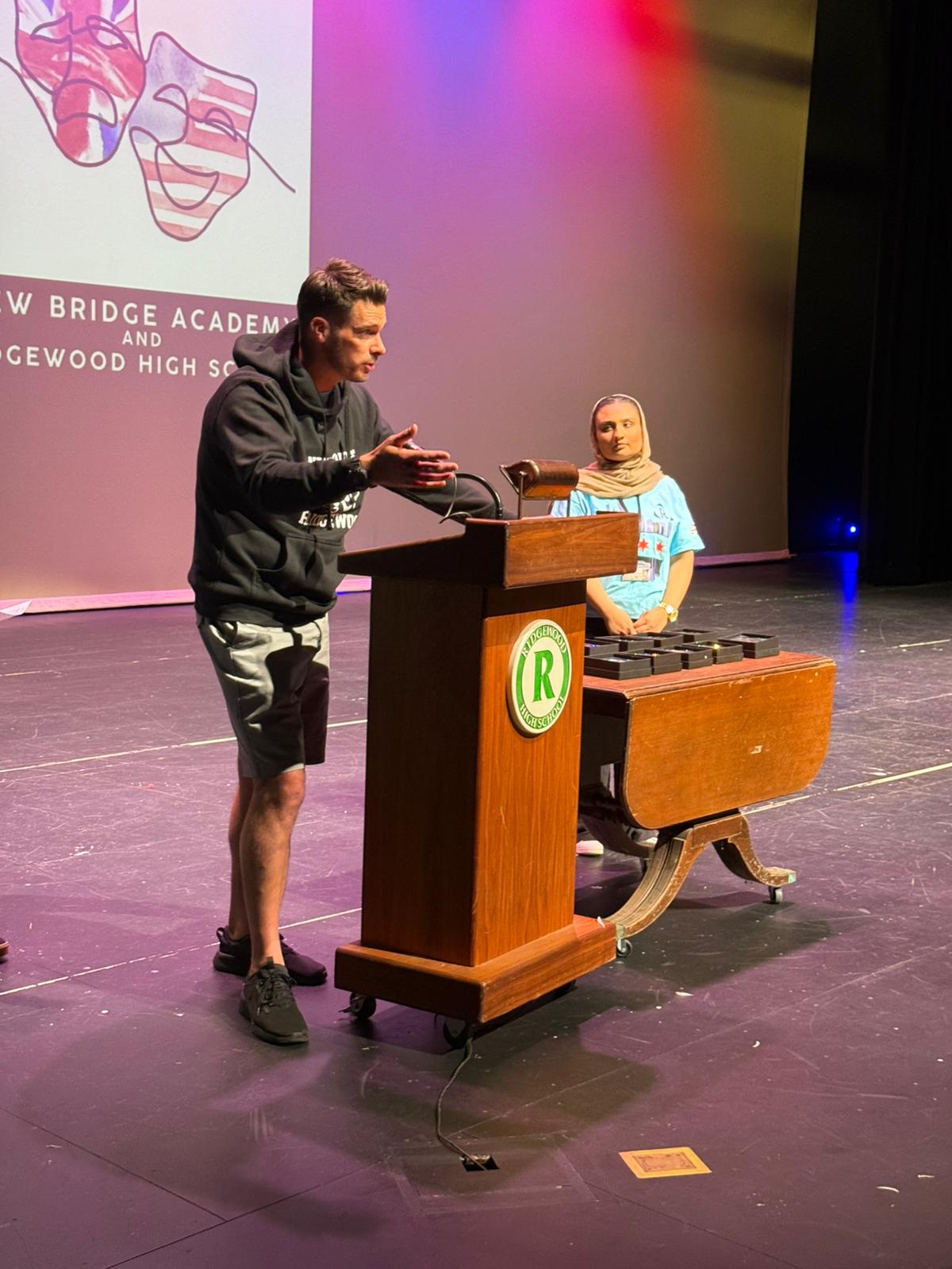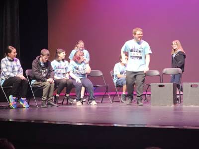 After lunch, it was time for New Bridge and Ridgewood students to showcase their Armando improv skills, on stage, in front of a live audience for the second time this week.