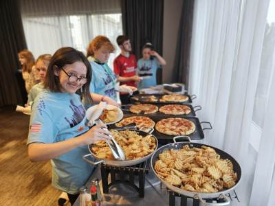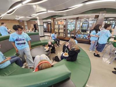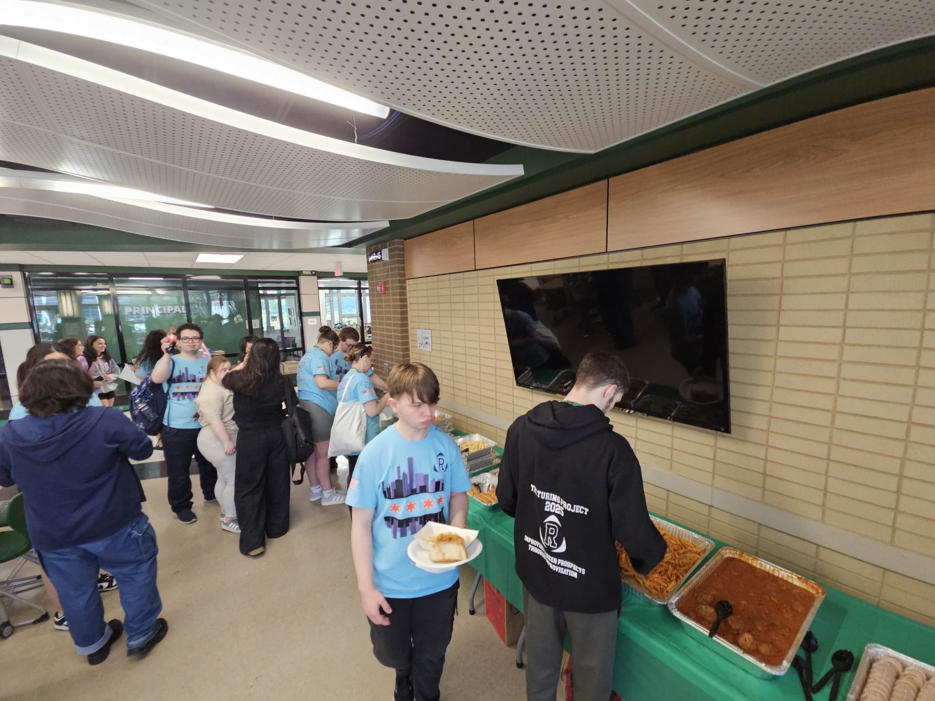 For lunch, we were treated to Portillo’s and Raising Canes. Students enjoyed tasty chicken fingers, meatballs, pasta, salad and falafels.