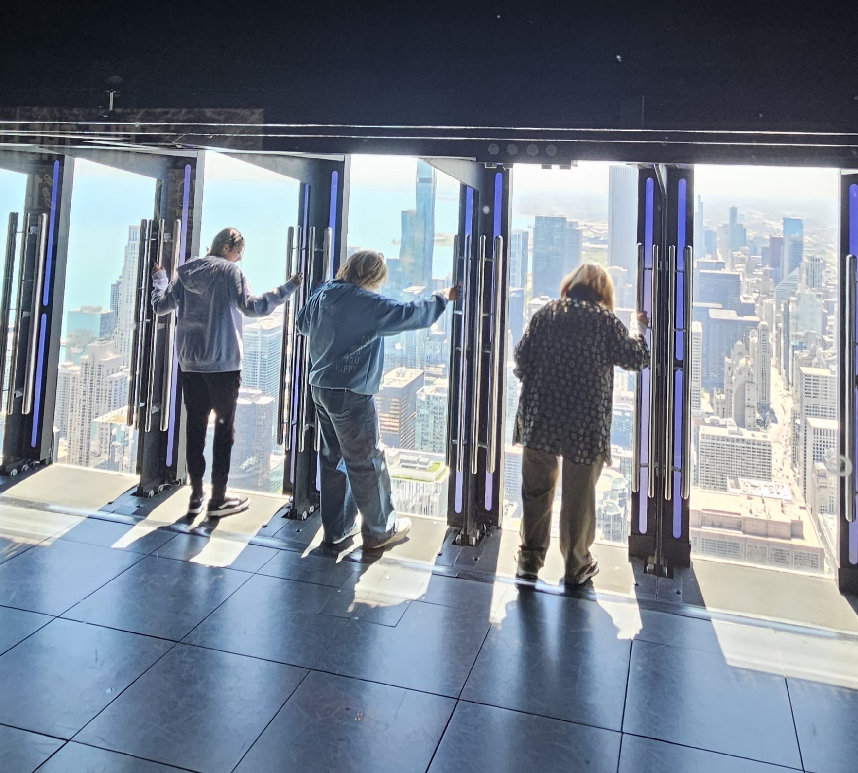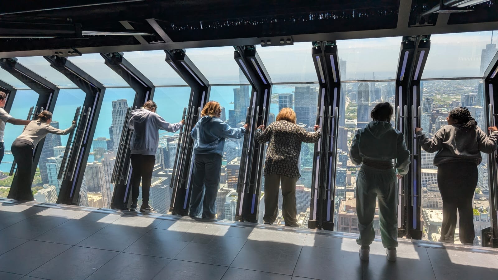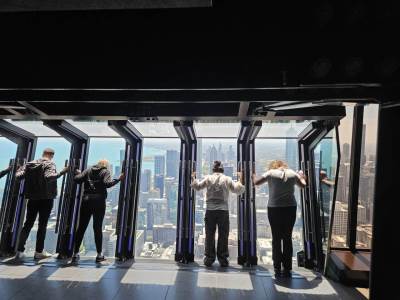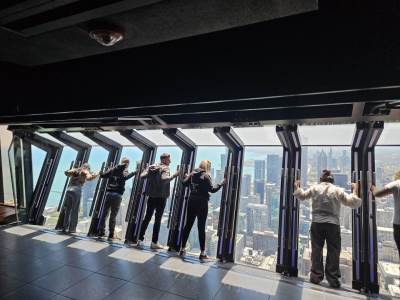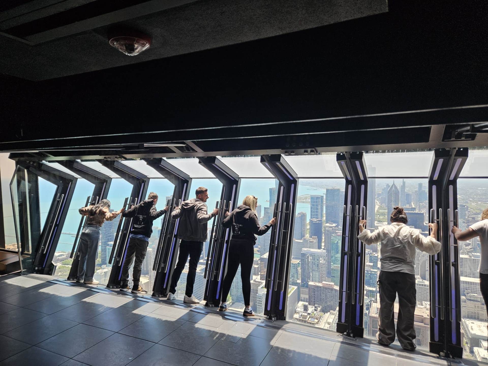 Our first stop off was '360 Chicago' in order to experience the TILT. Known as the ultimate window to the Windy City, the TILT is an enclosed, glass and steel moveable platform that holds up to eight visitors. Once safely situated inside, the platform slowly tilts outward to an adventurous angle, generating downward-facing views of Chicago – from one thousand feet above The Magnificent Mile.