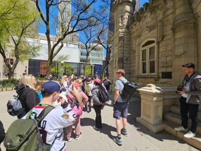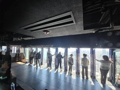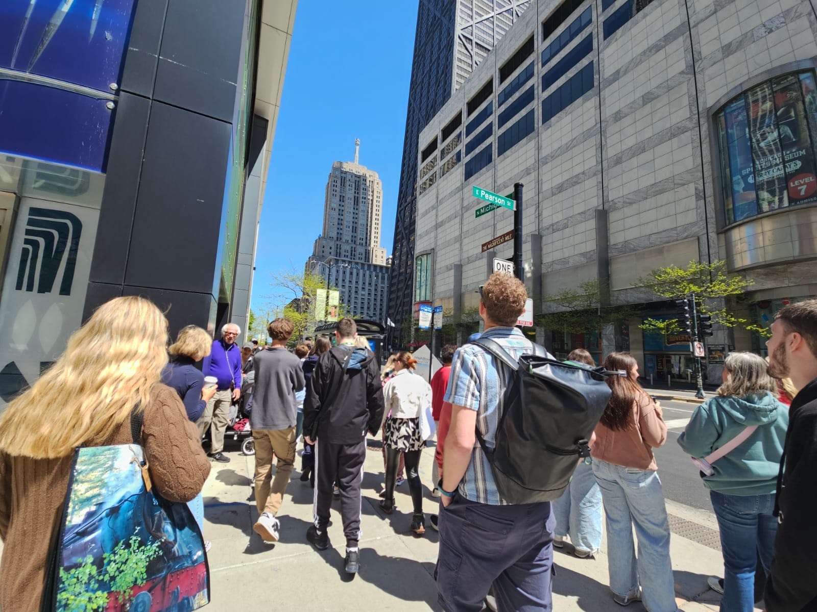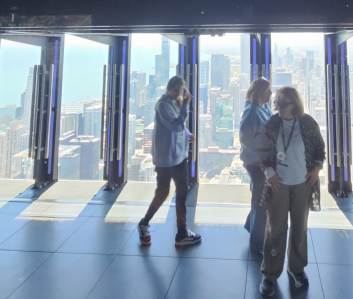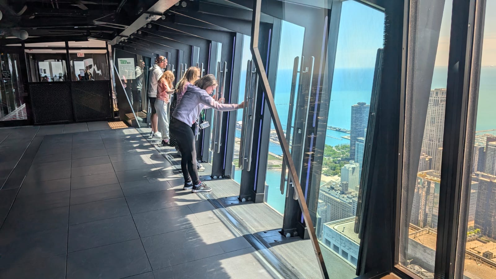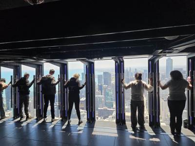 Our first stop off was '360 Chicago' in order to experience the TILT. Known as the ultimate window to the Windy City, the TILT is an enclosed, glass and steel moveable platform that holds up to eight visitors. Once safely situated inside, the platform slowly tilts outward to an adventurous angle, generating downward-facing views of Chicago – from one thousand feet above The Magnificent Mile.