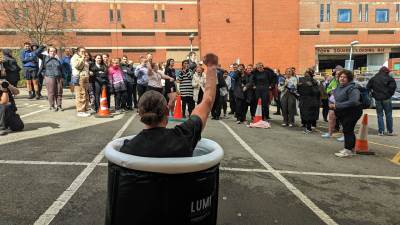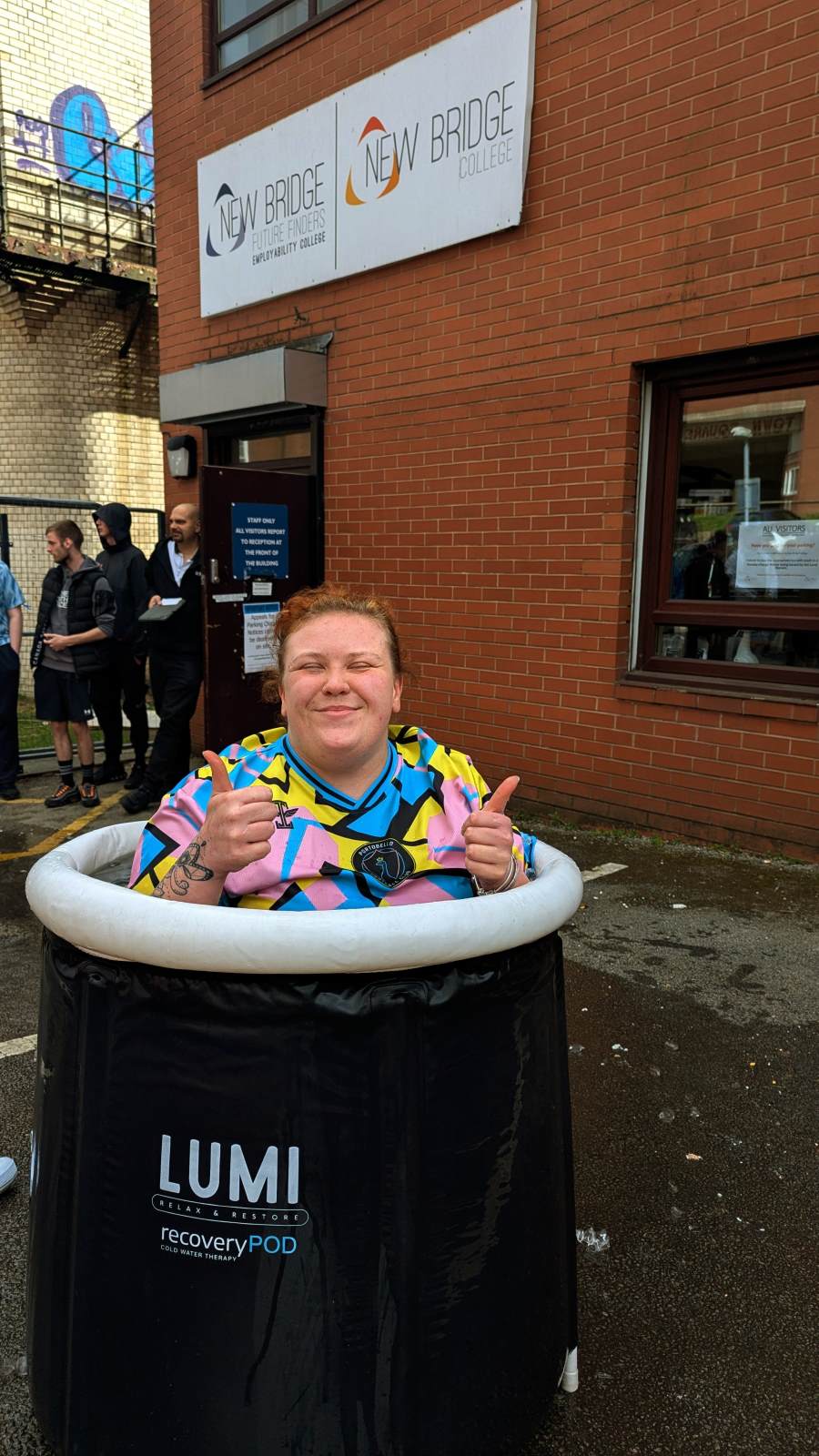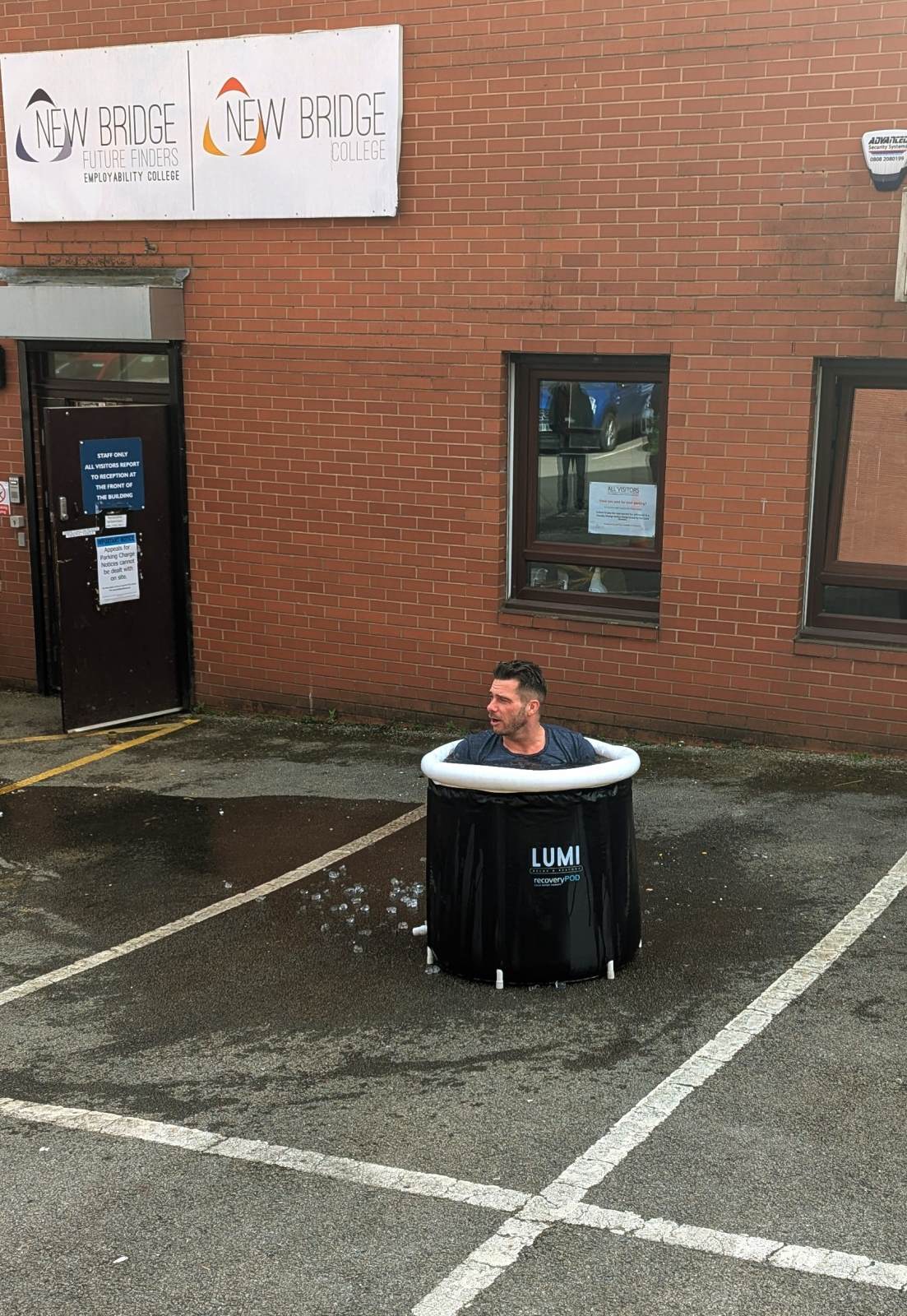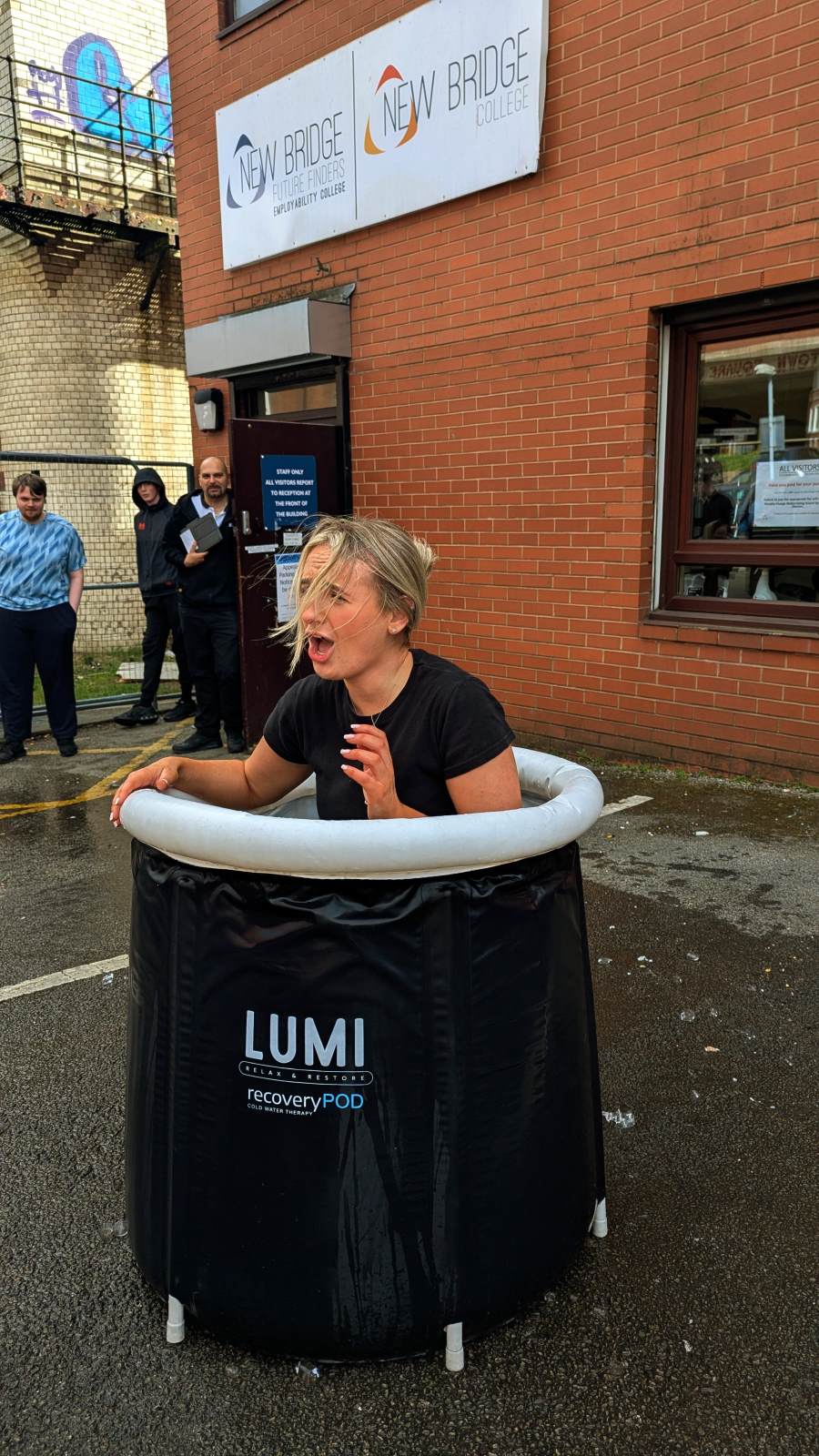As part of the fundraising events taking place to support the performing arts students' trip to Chicago in May, the New Bridge College staff team braved the cold and plunged in the ice bath!